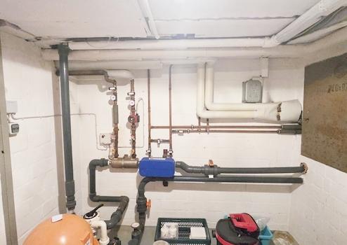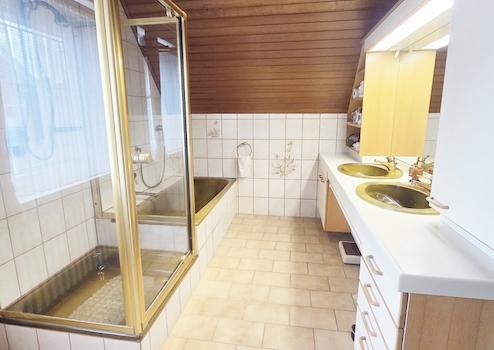 Die Grundsubstanz des Hauses ist in bester Verfassung und stets renoviert worden (Bsp. Dach, Schwimmbad, Doppelgarage, Heizung). Beim Eintritt in das Haus finden Sie neben dem großzügigen Eingangsbereich ein komplettes, modernisiertes Badezimmer.