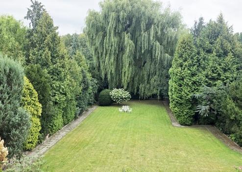 Das Grundstück ist komplett eingezäunt, so dass Hund und Kind nicht versehentlich verschwinden können.