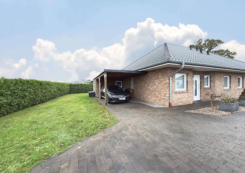 In einer absolut idyllischen Wohnlage von Walchum befindet sich diese exklusive, barrierefreie Walmdachbungalow-Doppelhaushälfte, die durch ihre durchdachte Architektur, helle Räume und ein harmonisches Wohnkonzept begeistert.