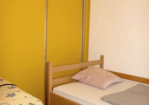 Die im Untergeschoss liegende Wohnung hat ein Wohnzimmer mit Zugang zu der Terrasse, ein großes Schlafzimmer, ein kleines Schlafzimmer, eine Küche und ein Badezimmer.