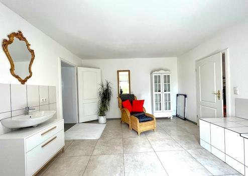 großer Wohn-/Essbereich mit integrierter, moderner Einbauküche, 2 Schlafzimmer, ein großes Badezimmer mit Dusche und Badewanne, 2 Gäste-WC, geräumiger Flur mit Zugang zum Vierkant des Haubargs und zu den Gemeinschaftsräumen