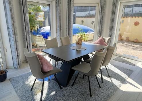2- 3 Familienhaus mit Gewerbehalle in guter Lage von Mühlhausen; Das lichtdurchflutete Traumhaus aus dem Jahre 1994 bietet auf einer Gesamtwohnfläche von ca. 280 m² 2 Küchen, 14 Zimmer, 2 Bäder, 2 G-WC´s, 2 Balkone; Eine Doppelgarage, Werkstatt und ein kleiner Garten mit Pool sind vorhanden; 2 getrennte Wohneinheiten mit separaten Eingängen; Einliegerwohnung im EG: möglich; Die Grundstücksgröße beträgt ca. 1396 m².