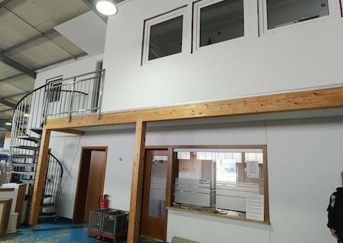 DG: ca. 110m², 5 Zimmer, Küche, Bad, G-WC, 2 Balkone (vermietet für ca. € 1100. - KM); GEWERBEEINHEIT: Halle mit ca. 375 m²: 2 Büroräume vermietet für ca. € 1650. - KM mtl;