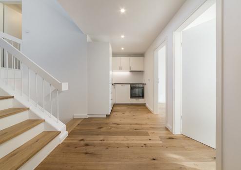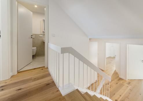 Beim Betreten der Wohnung fallen Ihnen sofort das Massivholzparkett aus Eiche und den schönen und stimmigen weißen Sockelleisten auf. Hochwertige Zimmertüren, moderne Schalter und Steckdosenblenden und eingebaute Deckenspots, die den Flur perfekt beleuchten, werden Sie begeistern.
