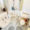 Das innenliegende Badezimmer ist hell gefliest und verfügt über eine Dusche.