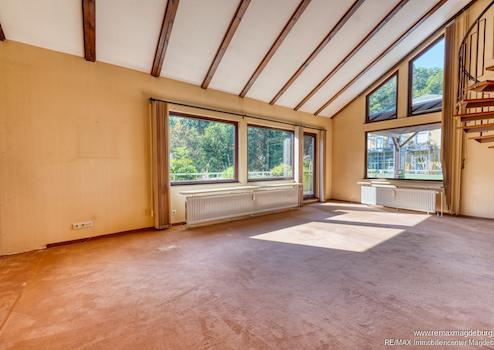 Diese Wohnung verfügt über eine Wohnfläche von 186,84 m². Die beheizte Wohnfläche beträgt 172,50 m². Ein besonderes Highligt ist das außergewöhnliche Wohnzimmer mit offenem Essbereich. Über eine Wendeltreppe erreicht man die sehr große Empore. Hier befinden sich zwei weitere Zimmer, die Sie z. B. als Arbeitszimmer und Ankleidezimmer nutzen können.