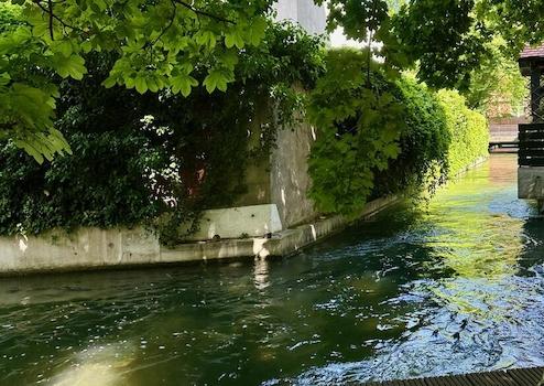 Es besticht durch einen wunderschönen, gepflegten Garten, der direkt am malerischen Stadtbach liegt. Mit eigenem Steg bietet er eine versteckte, ruhige Oase mitten in der Stadt. Hier können Sie entspannte Stunden am Wasser genießen und die friedliche Atmosphäre auf sich wirken lassen.