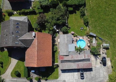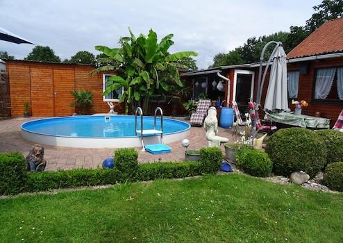 Mit großer Scheune (ausbaufähig), 5 Garagen + 4 Abstellplätze Wohnwagen /PKW, großen Garten mit Pool, 2 Terrassen und ein großes Gartenhaus zum Feiern.