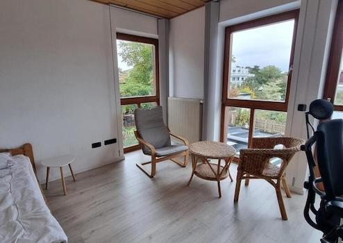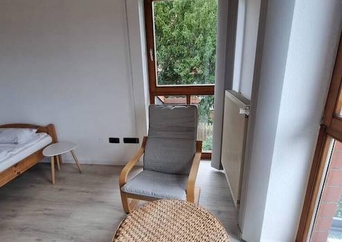 1 möbliertes Zimmer, 1.OG in einer 2 Zi.-Wohnung (insges. ca. 55 qm) in 2er WG mit Balkonnutzung, ruhige Lage im Grünen.