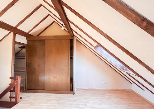 Über das Treppenhaus gelangen Sie in die Ober- und Dachgeschosswohnung mit Diele, Küche, Bad mit Badewanne, Toilette und Waschtisch, Schlaf- und Wohnzimmer. Vom Flurbereich aus führt eine Holztreppe in das Dachgeschoss, mit weiterer großzügiger Fläche zur individuellen Nutzung, einer separaten Toilette und einem Einbauschrank, sowie weitere Abstellfläche in den Schrägen.
