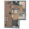 2. UG: ca. 34 m² 1-Zimmer-Appartment mit großer Terrasse
