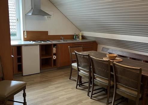 Obergeschoss: Zwei Ferienwohnungen, jeweils mit Küche, Bad und WC; größere Wohnung mit Loggia (Süd-Ausrichtung), unabhängige Vermietungsmöglichkeiten oder Nutzungswechsel.