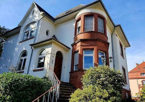 Die Villa ist komplett unterkellert. Im Hof befinden sich eine Garage und 8 Stellplätze.