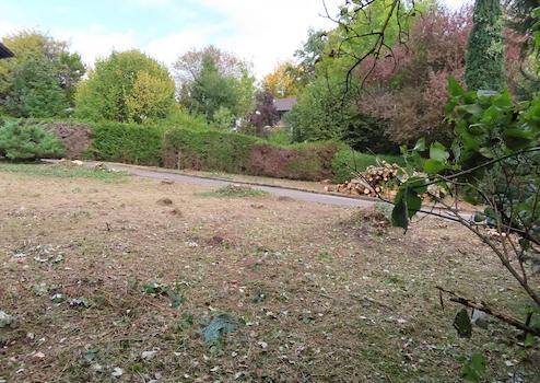 Das in Teilen sichtbare Haus am hinteren Ende des Grundstücks wird separat angeboten.