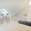 Zwei große Dachflächenfenster im Wohnzimmer vermitteln den Charakter eines Wintergartens und lassen sich bei schönem Wetter komplett zur Seite schieben, so dass man auf ca. 12 qm „im Freien sitzt“