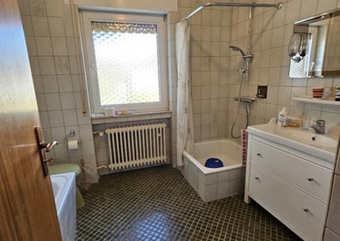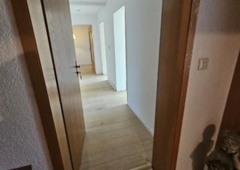 Die Küche ist ein Durchgangsraum, hier ist bereits eine Einbauküche vorhanden. In Verbindung mit dem Esszimmer ist hier auch geräumigeres Wohnen möglich. Diese Fläche umfasst insgesamt ca. 51m². Im Schlafbereich finden Sie das Hauptbad mit Badewanne und Wc, 2 kleinere Zimmer, die sich als Kinderzimmer oder Büro anbieten und ein grosses Elternschlafzimmer.