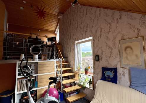 Zwei der Schlafzimmer sind als charmante Galeriezimmer gestaltet und bieten vielseitige Nutzungsmöglichkeiten – ob als Kinderzimmer, Homeoffice oder Gästezimmer. Zur Immobilie gehören zudem eine Garage sowie ein zusätzlicher Stellplatz.