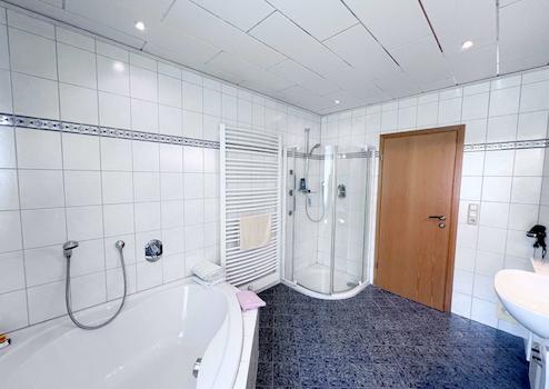 - Zwei Badezimmer (Hauptbad mit Wanne und Dusche, Gästebad mit Dusche)