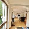 Die Küche ist offen gestaltet und integriert sich perfekt in den großzügigen Wohnbereich. Der gemütliche Essplatz ist über einen hübschen Rundbogen mit dem Wohnraum verbunden.