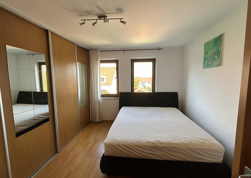 Vom Schreiner maßgefertigte Einbauschränke im Schlafzimmer und im Flur bieten viel Stauraum.