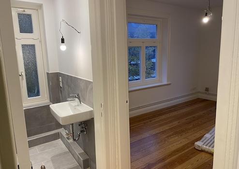 Dazu gehören eine komplett erneuerte Elektroinstallation & Sanitärinstallation, eine neue Gastherme inklusive aller Heizungsleitungen und Heizkörper, sowie eine Fußboden-Trockenestrich-Verlegung in Bad und Küche. Die alten Holzdielen wurden liebevoll aufgearbeitet, und ein neues Holzfenster im Wohnzimmer sorgt für zusätzliches Tageslicht und eine angenehme Atmosphäre. Die Hamburger Fußleisten runden das stilvolle Gesamtbild ab.