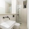 + Duschbadezimmer mit Fenster, naturfarbenen Fliesen und großem, deckenhohen Spiegel