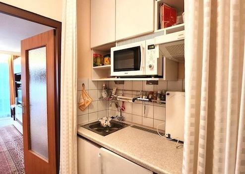* Integrierte Küchenzeile mit Kühlschrank und Mikrowelle