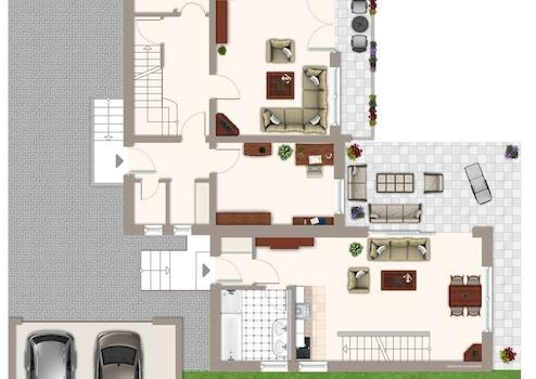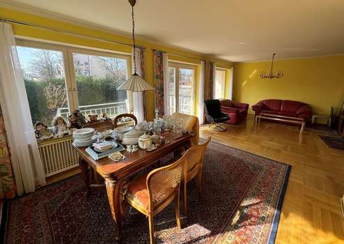 Das Erdgeschoss überzeugt durch den großzügig geschnittenen und hellen Wohn- / Essbereich mit direktem Zugang zur Terrasse.