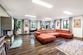 Das Herzstück ist der offene Wohn- und Essbereich mit großflächigen Fenstern, dunklem Designboden und lichtdurchfluteter Atmosphäre. Für behagliche Abende sorgt ein Kaminofen; ein integriertes Soundsystem sowie ein Beamer machen den Raum zum privaten Kinosaal. Direkt angrenzend: die stilvoll geplante, hochwertig ausgestattete Küche – modern und funktional zugleich. Ein weiterer Raum, aktuell als Fitnesszimmer genutzt, liegt neben der Küche; eine Schiebetür ermöglicht flexible Nutzung und einen direkten Übergang zum Wohnbereich.
