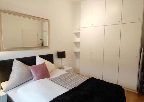 Modern möbliertes Apartment mit grozügigem Wohn/Schlafbereich, möbliert mit Doppelbett, Kleiderschrank und Essbereich. Bad mit Fenster und Badewanne. Separate, voll ausgestatte Küche.