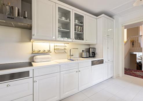• Küche, mit modernen, weißen Fronten und Vollausstattung, Platz für einen Sitzplatz