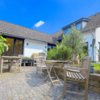 Der Garten, der im Jahr 2012 komplett neu gestaltet wurde, bildet den ruhigen Mittelpunkt der Immobilie und verbindet die beiden Gebäudeteile auf harmonische Weise miteinander. Ein eigener Brunnen verleiht dem Außenbereich nicht nur einen besonderen Charme, sondern unterstützt auch die Gartenbewässerung. Hier entsteht ein Ort zum Entspannen, Genießen und Wohlfühlen – perfekt als erweiterter Wohnbereich in den warmen Monaten.