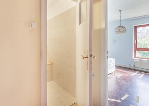 Über eine Holztreppe erreichen Sie das Obergeschoss, wo sich das großzügige Schlafzimmer, das Gäste-/ Kinderzimmer und das hell geflieste Vollbad (innen liegend) befinden.