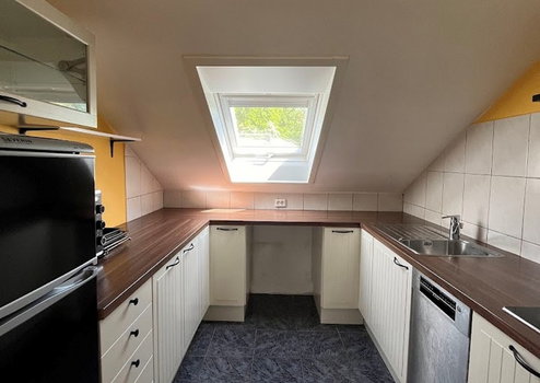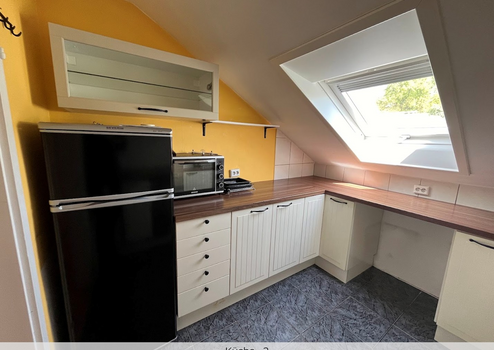 Das im Jahr 2019 renovierte Tageslichtbadezimmer ist mit einer Badewanne, Waschtisch, WC sowie einem Waschmaschinenanschluss ausgestattet und bietet durch das Fenster eine angenehme natürliche Belüftung. Die funktionale Einbauküche rundet das Raumangebot ab.