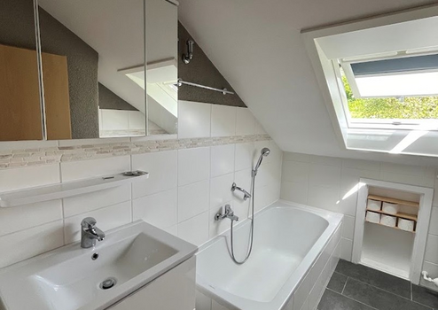 Badezimmer: Das im Jahr 2019 komplett renovierte Badezimmer mit Fenster bietet eine zeitgemäße Ausstattung mit Badewanne, Waschtisch und WC. Ein Waschmaschinenanschluss ist selbstverständlich vorhanden. Durch das Fenster wird eine natürliche Belüftung ermöglicht, was für ein angenehmes Raumklima sorgt.