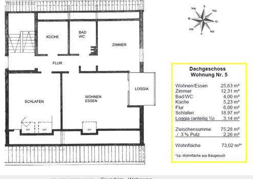 Das Herzstück der Wohnung bildet das großzügige Wohn-/Esszimmer mit ca. 25,63 m², das durch seine offene Gestaltung vielfältige Einrichtungsmöglichkeiten bietet. Von hier aus gelangen Sie direkt auf die nach Osten ausgerichtete Loggia – der perfekte Ort, um den Tag mit einem Frühstück in der Morgensonne zu beginnen. Ein wichtiger Hinweis zur Transparenz: Da die Objektfotos bereits etwas älter sind, ist darauf nicht zu erkennen, dass das angrenzende Nachbargrundstück mittlerweile bebaut wird. Die Baumaßnahme ist vom Balkon aus sichtbar und hat das direkte Umfeld verändert.