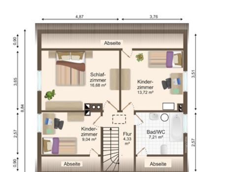 - Dachgeschoss: drei Schlafzimmer/Kinderzimmer, Hauptbad