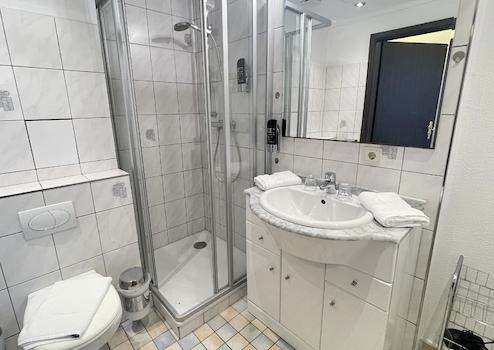 Flur, Wohn- und Esszimmer mit Küchenzeile und Loggiazugang, Schlafzimmer, Duschbad