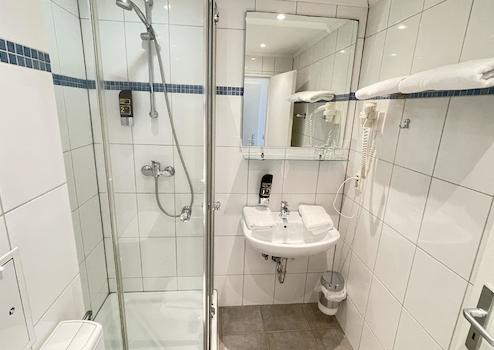 Flur, Wohn- und Esszimmer mit Küchenzeile und Loggiazugang, Schlafzimmer, Duschbad