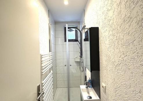 Ein modernes Duschbad mit Fenster und ein separates WC runden die Immobilie ab.