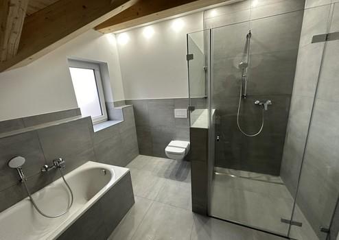 - Bäder mit Badewanne, bodengleiche Duschen (mit Glasduschkabinen), WC und Waschbecken.
