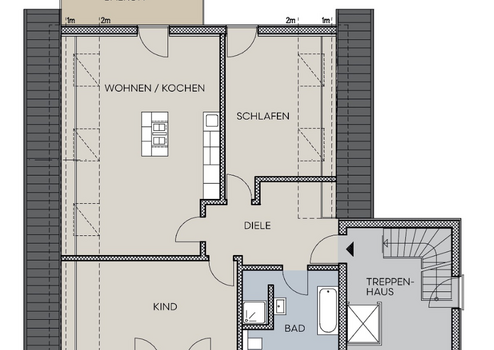 3- und 4-Zimmer-Wohnungen jeweils mit einer Garage und einem Stellplatz.