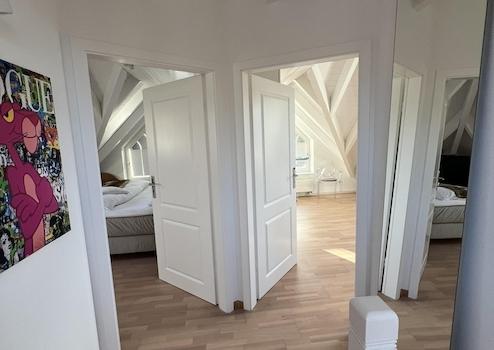 - Erneuerung Innenanstrich und Lackierung sämtlicher Türen/Zargen sowie der Holzverkleidung des Dachgeschosses