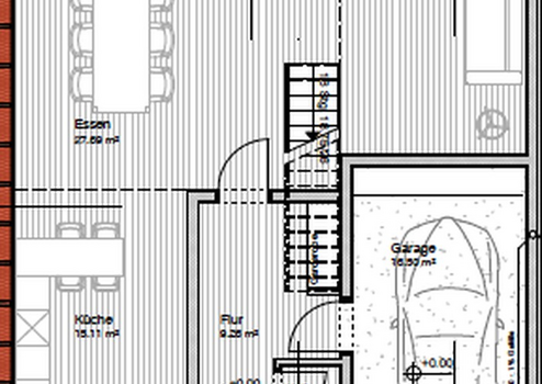 EG: Wohnen, Essen, Kochen, Gäste-WC sowie Zugang zum Garten / Zugang zur Garage