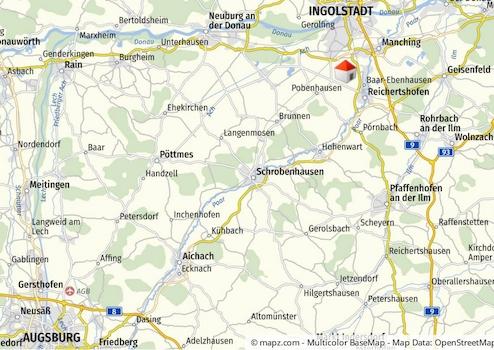 Grillheim bei Karlskron (ca. 2 km entfernt) liegt im nordwestlichen Teil des oberbayerischen Landkreises Neuburg-Schrobenhausen in einer ruhigen und ländlich geprägten Region.