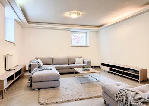 Im Untergeschoss stehen etwa 120 m² für Hobby, Gäste und Sauna mit einem weiteren Duschbad zur Verfügung.