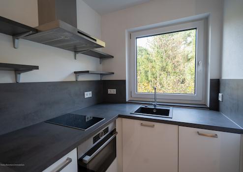 * ablösefreie Einbauküche mit verschiedenen E-Geräten, Induktionsherd, Umluftdunstabzug, Backofen und Spülmaschine sowie verschiedene Unterbauschränke und Wandregale (KEIN Kühlschrank)
