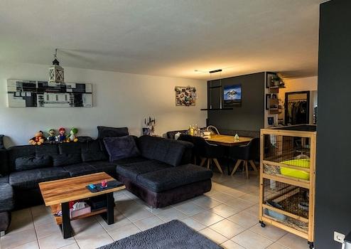 Der lichtdurchflutete Wohn- und Essbereich bildet den Mittelpunkt der Wohnung und überzeugt durch seine offene Gestaltung sowie den direkten Zugang zur Terrasse. Hier lässt sich der Alltag entspannt genießen – ob beim Frühstück im Freien oder entspannten Abendstunden.