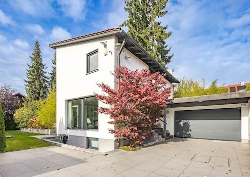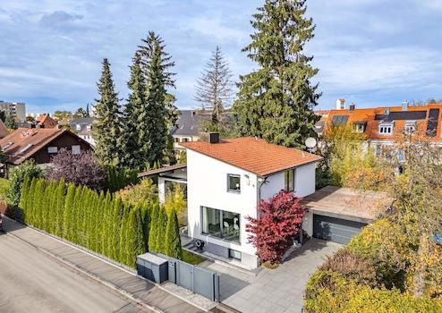 Zentrumsnah, ideal angebunden und umgeben von viel Grün: Dieses Architektenhaus befindet sich nahe dem Westpark in einer reinen Anwohnerstraße, die von niedriger Bebauung geprägt wird.