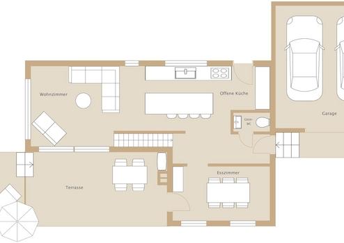 Das Raumangebot erstreckt sich über ca. 189 m² und umfasst einen weitläufigen Wohn-/Essbereich mit offener Küche, zwei bis drei (Schlaf-)Zimmern und ein wohnlich ausgebautes, helles Souterrain, das weitere flexibel nutzbare Räume bietet. Ein Highlight ist der uneinsehbare Garten mit Sonnenterrasse und Außenkamin. Eine Doppelgarage und drei Außenstellplätze machen dieses Objekt perfekt.